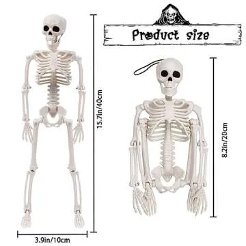 XIMISHOP 2pcs Skeleton Halloween Decoration, 16” Full Body Posable Halloween Hanging Plastic Skeleton Decoration with Movable Joints for Halloween Decoration Indoor Outdoor