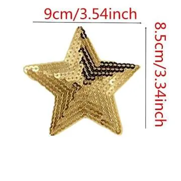 Ximkee Pack of 10 Shiny 5 Star Sequins Sew Iron on Applique Embroidered Patches-Gold