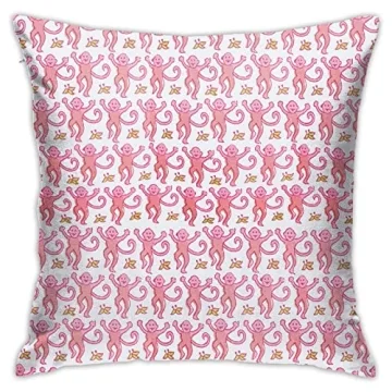 Xindi Pink Rabbit Monkeys Throw Pillow Covers - 18x18 Inch, Double-Sided, Polyester