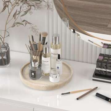 Show moreDiscover the perfect blend of functionality and style with the XINFUHUA Travertine Tray, an exquisite small ceramic vanity tray ideal for elevating your home decor. This meticulously crafted tray, measuring 8 x 8 x 0.98 inches, is made from high-quality ceramic with a beautiful beige finish that subtly adds elegance to any setting. Whether you’re tidying your jewelry collection or simply showcasing decorative accents, this versatile tray adapts seamlessly to your needs, making it a delightful addition to any bathroom counter, living room coffee table, or sophisticated office space. Its sleek design is not only practical but also resonates with the modern aesthetics of today’s decor trends, ensuring your home remains stylish and organized.