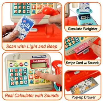 Why You Will Love This Product: This cash register not only provides entertainment but serves as a gateway for your child's learning and development. Its interactive features cultivate a sense of responsibility and awareness of currency, while the tactile experience of handling play money enhances motor skills. Watching your child engage with this toy, share imaginative playtime with friends or family, and build confidence in their social interactions creates invaluable memories. Give your child the gift of learning through play and watch them flourish with joy!