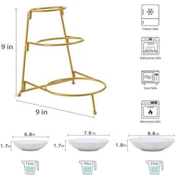 Show moreWelcome to a world where elegance meets functionality with the XINLTC 3 Tier Serving Stand with Porcelain Serving Platter. Designed for those who adore hosting and want to make lasting impressions, this exquisite serving stand boasts three delicate porcelain tiers, perfect for showcasing your favorite pastries, candies, and appetizers. Each platter has an impressive capacity of 25 fl. oz, 18 fl. oz, and 15 fl. oz, allowing you to curate a delightful display that complements any occasion. Wrapped in a stunning gold finish, it’s more than just a serving tray; it's a piece of art that elevates your dining experience.