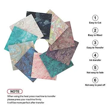 Show moreElevate your crafting game with the XINPOCUT Infusible Transfer Ink Sheets. This all-in-one set contains 10 high-quality sheets each measuring 12"x12", perfect for all your sublimation projects with a beautiful watercolor marble design. Compatible with Cricut Mug Press and heat press machines, these transfer sheets allow you to unleash your creativity onto a variety of surfaces—whether it’s t-shirts, mugs, or bags. Users rave about the stunning colors and the ease of application, making this an essential addition for any DIY enthusiast or professional crafter.