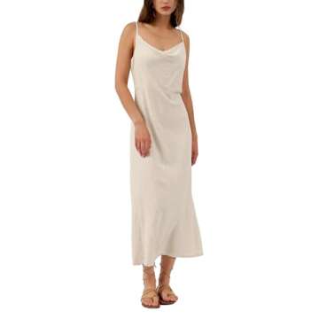 Xintianji Women's Linen Beach Long Casual Cowl Neck Spaghetti Strap Lounge Midi Dress Party Club Dresses Flax Small
