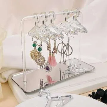 Show moreIntroducing the XINZHIDA Earring Hanger Rack, your ultimate solution for organizing and displaying earrings with style and elegance. Made from premium acrylic, this innovative earring holder features 8 mini coat hangers designed specifically to showcase up to 4 earrings each. Whether you have delicate hooks, stylish studs, or bold dangling pieces, this versatile rack keeps your collection tangle-free and easy to access. Say goodbye to messy jewelry drawers and hello to a beautiful display that enhances your decor!