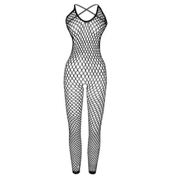 XIUSEMY Women Sexy Lingerie Full Body Bodysuits V Neck Mesh Fishnet Stockings Lingerie Nightwear(Black,one size)