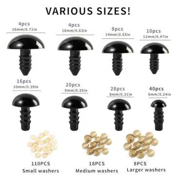XKDOUS 260PCS Plastic Safety Eyes with Washers, 6-18 mm, 8 Sizes Safety Eyes for Crochet Crafts, DIY Crafts, Stuffed Animals