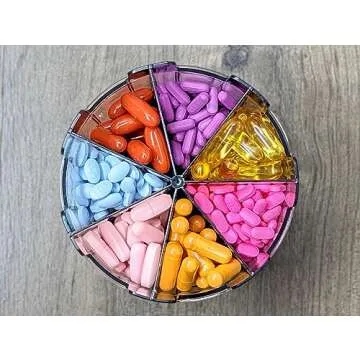 XL Supplement Pill Dispenser Bottle, 7 Compartment, Labels, Easy Open, Anti-Mixing, UV Protected Organizer, Extra Large Monthly Vitamin, Monster Fit Medication Holder Includes Premium Medisafe App