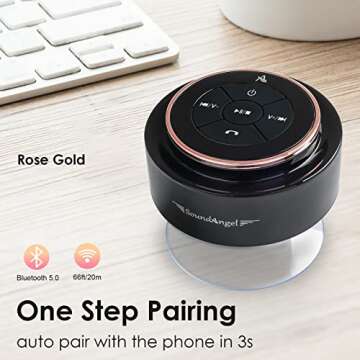 XLEADER Rose Gold Bluetooth Shower Speaker, SoundAngel Mate Certified IPX7 Waterproof Bathroom Speaker with Suction Cup Mic 5W Crystal Sound, 15H Playtime, for Girls Women