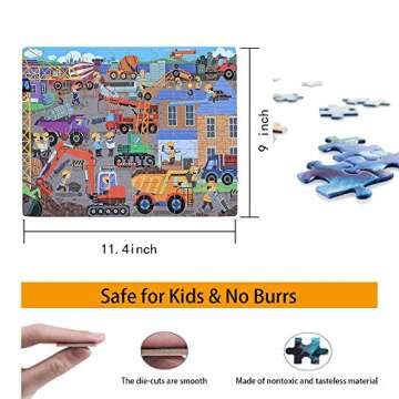 XLJ Puzzles in a Metal Box - 100 Piece Construction Site Puzzle for Kids 4-8
