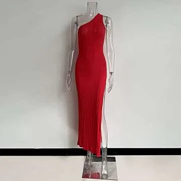 Show moreIntroducing the XLLAIS Ribbed Dress Sexy One Shoulder Split Maxi Long Dresses Beachwear, the ultimate fashion piece designed to enhance your curves while ensuring comfort and style. This stunning dress boasts a fashionable split design with a unique one shoulder sleeveless cut that gracefully highlights your silhouette. Crafted from high-quality, stretchy ribbed fabric, this dress hugs your body in all the right places, giving you a sexy bodycon fit that is perfect for showing off your figure on any occasion. Its solid color ensures you remain stylish without being see-through, making it an ideal choice for beachwear or evening outings.