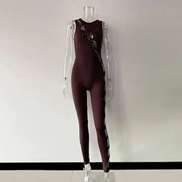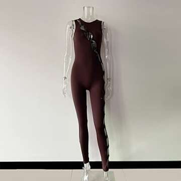 Show more Unleash your inner fashionista with the **XLLAIS Sexy Buckle Jumpsuit**, a stunning sleeveless design crafted for the modern woman. This eye-catching one-piece bodycon romper featuring intricate hollow-out details and a chic high waist provides both style and comfort, making it an essential addition to your wardrobe. The solid brown color enhances its versatility, allowing you to transition seamlessly from day to night, while the convenient zip-up feature ensures an easy on-and-off experience. Perfect for showcasing your unique fashion sense at various occasions, this jumpsuit is the epitome of contemporary chic.