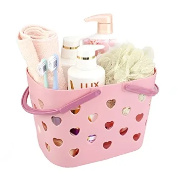 Xloey Pink Plastic Shower Caddy Basket - Versatile & Adorable Organizer Tote