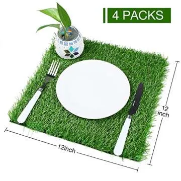 XLX TURF 12X12 Artificial Grass Table Placemats 4 Pack, Green Fake Grass Patch Square Tiles Table Runner Decor Birthday, Party, Baby Shower, Wedding, Holiday