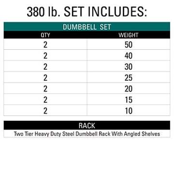 XMARK 10-50 Pound Dumbbells Weight Set (7 Pairs) with Weight Storage Rack (Gray)