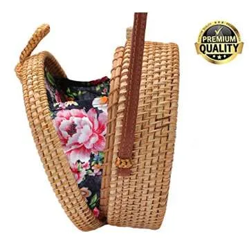 Crafted with care, this bag is secured with a durable strap that can be worn comfortably as a crossbody or shoulder bag, making it a trusty companion for traveling. Its tight rattan weaving ensures durability, and the beautiful floral lining inside offers a touch of elegance. Whether you choose to keep this treasure for yourself or gift it to a loved one, it is bound to be a remarkable present that stands out from the ordinary.