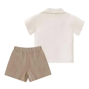 XMWEALTHY Toddler Baby Boy Summer Clothes Color Block Short Sleeve Button-Down Shirt Tops Cotton Pants Outfit Set 18-24M Beige Khaki
