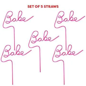 xo, Fetti Bachelorette Party XL Pink Babe Straw Set - 5 pieces | Bridal Shower + Party Decorations | Birthday Party Gift