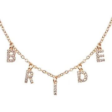 The necklace features the word 'BRIDE' in sparkling cubic zirconia, making it a perfect accessory for bridal celebrations.