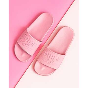 Show moreStep into the spotlight with the xo, Fetti Bride Sandals, where chic design meets ultimate comfort. These stunning pink rubber slides are not just another pair of sandals; they are the perfect blend of style and functionality, specially designed for brides-to-be! Constructed from high-quality, durable pink PVC, these sandals feature a stylish embossed logo that adds a touch of elegance to your wedding celebrations. Whether you’re slipping them on after your bachelorette party or flaunting them at the beach, these sandals are the must-have accessory for the fashionable bride.