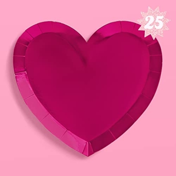 xo, Fetti Hot Pink Foil Heart Plates - 25 Pack | Vday Cake Plates & Party Decor