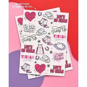 xo, Fetti Last Rodeo Bachelorette Temporary Tattoos - 48 Glitter Styles | Giddy Up Bach Party Decoration, Cowgirl, Bridesmaid Favor, Bride to Be Gift + Bridal Shower Supplies