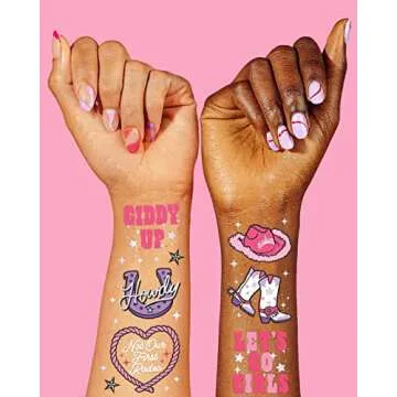 Show more Introducing the xo, Fetti Rodeo Birthday Party Temporary Tattoos – a delightful accessory that brings a touch of wild west charm to any celebration! Perfect for cowgirls and fans of rodeo themes, these temporary tattoos are more than just decorations; they are the standout feature of any birthday party or gathering. With a collection of exclusive designs that can't be found anywhere else, you can be sure that your party will be brightened with the fun and excitement these tattoos provide.