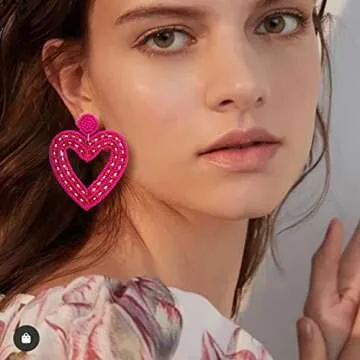XOCARTIGE Valentine’s Day Earrings for women Heart Dangle Drop Earrings Red Beaded Earrings Romantic Sparkling Rhinestone Handmade Gift Earrings (Rose Red)