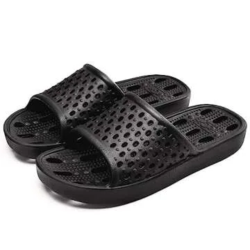 Xomiboe Mens Shower Shoes for College Dorm Room Essentials Student Boy Women Bathroom Slippers Shower Sandals Slides With Holes Quick Dry Man Non Slip Guys Hotel Male Bath (Black,EU40-41)