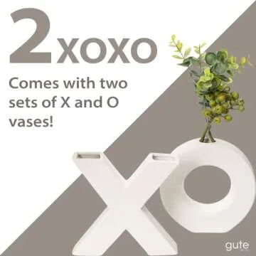 Show more Welcome to an enchanting realm of elegance with the XOXO Vase Set by Gute, featuring two exquisite vases designed to bring an inviting accent to any space. This charming duo, shaped as X and O, is the perfect decorative centerpiece that effortlessly elevates your decor. Crafted from high-quality materials, these vases stand 6 inches tall and are ideal for displaying fresh flowers or stylish succulents. Their sleek white finish complements a range of decor styles, from minimalist modern to classic chic, making them a versatile addition to your home.