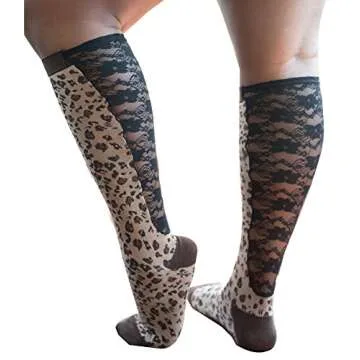 Xpandasox Women's Plus Size/lymphedema Cotton Blend Leopard/lace Knee High Socks