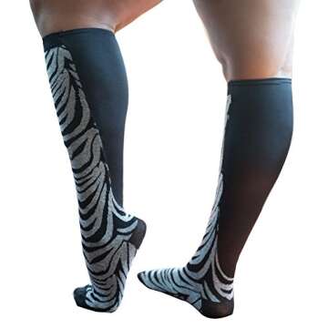 Xpandasox Women's Plus Size/Wide Calf Cotton Blend Zebra/Solid Knee High Socks