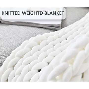 XPKWS Chunky Knitted Weighted Blanket Hand Made Polyester Throw Blankets for Sleep Bed Sofa Chair Home Decor Breathable Cozy (White, 51"x63")