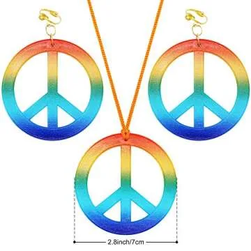 Xplanet 4 Pieces Hippie Costume Set, 60s 70s Hippie Party Accessories for Women Men, Includes Rainbow Peace Sign Necklace,Flower Crown Headband, Peace Sign Earrings and Hippie Sunglasses