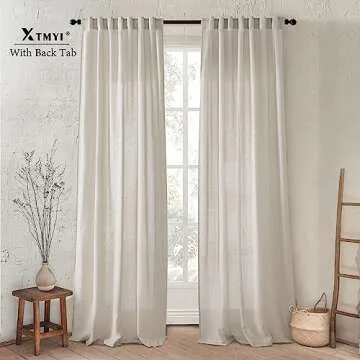 Show more Transform your living space into an oasis of elegance with sheer linen curtains that beautifully blend style and functionality. Crafted by XTMYI, these stunning drapes are made from a unique blend of 20% cotton, 20% linen, and 60% polyester, resulting in a fabric that is not only stone-washed for an ultra-soft feel but also mirrors the organic characteristics of linen. The meticulous design ensures that you enjoy a stunning drape that is medium thick, airy, and breathable, perfect for those hot summer days.
