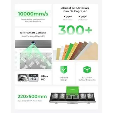 Show moreTransform your creative projects with the xTool F1 Ultra Deluxe Bundle, the ultimate production solution set designed for both on-site customization and efficient studio production. This innovative bundle includes a state-of-the-art laser engraver with a dual laser system combining both fiber and diode lasers, allowing you to expand your crafting capabilities like never before. Powered by xTool's Auto Streamline Production technology, this machine boasts incredible speeds of up to 10,000mm/s, allowing you to finish large batches in mere minutes. Whether working on intricate projects or simple engravings, the RA2 Pro lets you easily engrave on curved surfaces, opening up a world of possibilities.