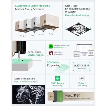 But that’s not all. The xTool S1 comes equipped with patented Pin-point Positioning technology for beautifully detailed 3D engravings on curved surfaces. Coupled with direct compatibility with 4 switchable laser modules (including 10W, 20W, 40W), you can engrave various materials from wood to metal seamlessly.