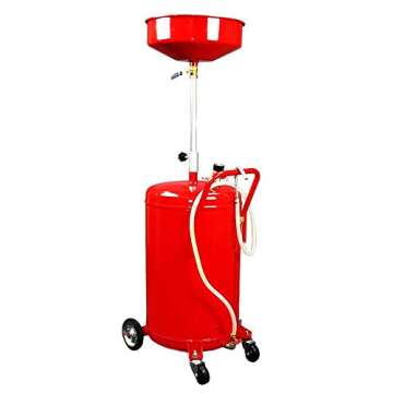 XtremepowerUS 20 Gallon Portable Waste Oil Drain Tank Air Operated Drainage Adjustable Funnel Height with Wheel, Red