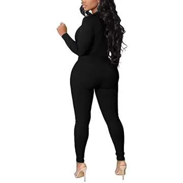 Xuan2Xuan3 Sexy Black Plus Size Catsuits for Women - Flattering Bodycon Jumpsuit