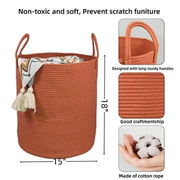 XUANGUO Cotton Rope Laundry Basket Hamper for Clothes Woven Storage Basket for Living Room Bedroom Boho Tall Rope Baskets for Blanket Toys Pillow Towels Baby Nursery Hamper Bin Large rust red