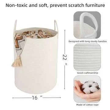 Introducing the **XUANGUO Cotton Rope Laundry Basket Hamper**, a multifunctional storage solution that combines style and functionality for modern homes. Measuring **16 inches in diameter by 22 inches in height**, this large tall rope basket elevates your space while keeping it organized. Made from durable and non-toxic coiled cotton rope, it is safe for both children and pets, ensuring peace of mind as you use it in your laundry room, nursery, or any room needing a touch of class. The neutral color...