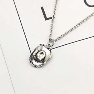 xuanhang 925 Sterling Silver Plated Cowboy Hat 3D Cap Charm Pendant Necklace