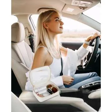 XUGUXA Clear Makeup Bag, Travel Toiletry Organizer with Zipper, Portable Leather Cosmetic Case with Handle, TSA Approved Transparent Make Up Storage Bags, Car Essentials for Women Gift (Medium White)