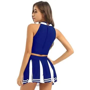 XUNZOO Women Schoolgirls Cheerleading Costume 2 Piece Fancy Role Play Dress Uniform Crop Top Mini Skirt Outfits Blue Medium