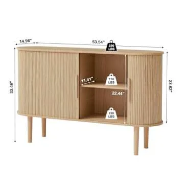 XUZENEST 53'' Modern Credenza Storage Cabinet with Fluted Slide Doors, Tambour Bar Console Table for Living Dining Room Kitchen Hallway Entryway, Natural