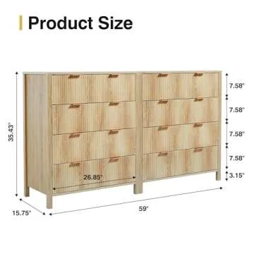 XUZENEST4 Drawer Double Dressers for Bedroom with Waveform Fluted Panel Design, Modern Wide Chest of Drawers,Wood Storage Dresser Chest of Drawers for Bedroom Living Room Hallway Closet,Natural 2 Sets