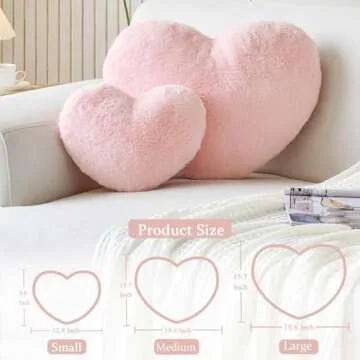 XVTRU Pink Heart Pillows, Cute Heart Decorative Pillow, Heart Shaped Throw Pillows for Bed, Faux Rabbit Fur Plush Hoom Decor Pillow Cushion for Chair Sofa Living Room (Mini 12.9" x 9.8")