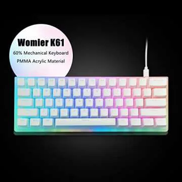 Show moreIntroducing the XVX Womier 60% Percent Keyboard, an innovative wired mechanical gaming keyboard designed for ultimate performance and aesthetics. With a sleek and compact design featuring a 360º full transparent acrylic panel, it's not just visually appealing but also space-saving—perfect for gamers on-the-go or desktop setups. This keyboard has 61 keys that provide a responsive typing experience, compatible with both Windows and Mac operating systems. If you seek a keyboard that blends style and functionality, the Womier K61 PRO is your ideal choice.