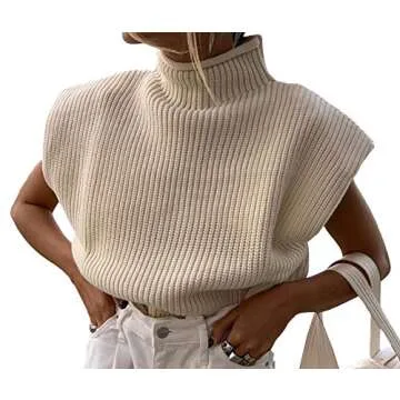 xxxiticat Women's Cap Sleeve Sweater Vest Mock Neck Knit Pullover Tank Shirt 2025 Trendy Spring Summer Sleeveless Cute Top(AP,XL) Apricot