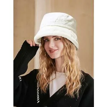 XYIYI White Women's Winter Faux Fur Fuzzy Bucket Hat Warmer Fisherman Cap